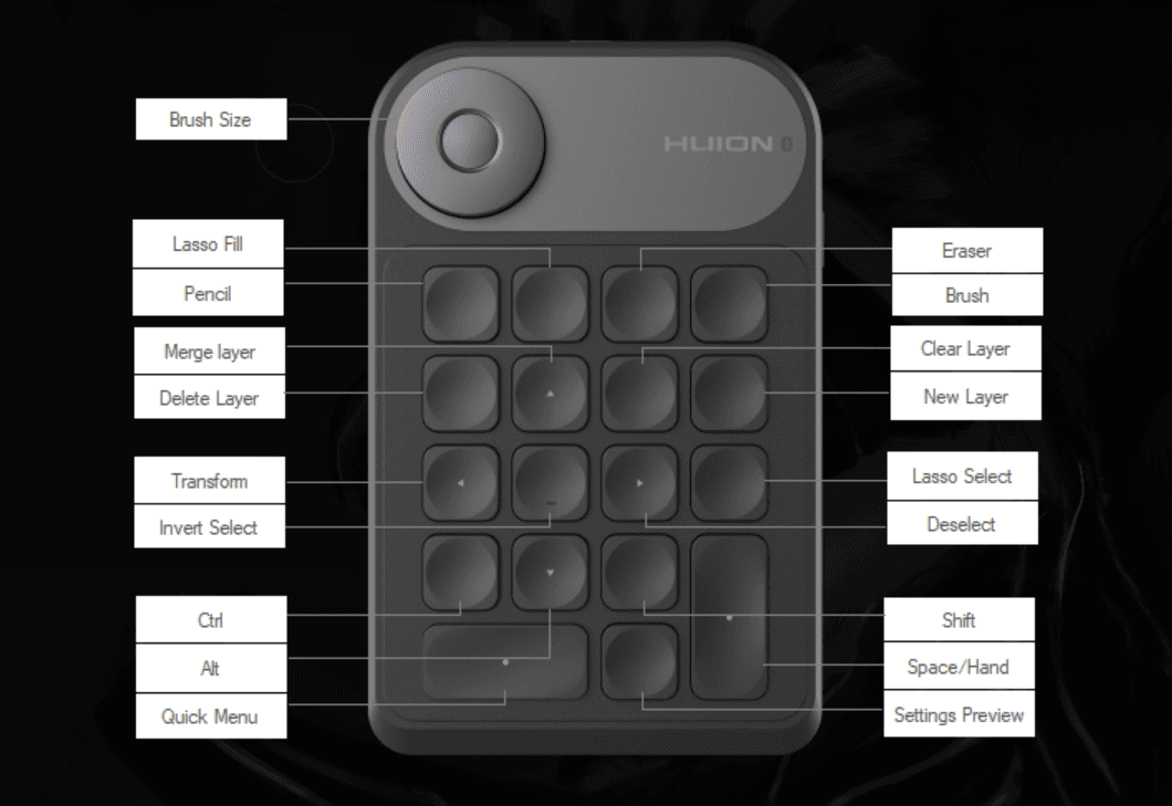 Before getting started, you will need to download and install the driver. The new Huion Tablet application on your computer is where you’ll be able to customize everything about the tablet: the work area, the pen buttons and pressure curves, and the buttons of the shortcut remote.