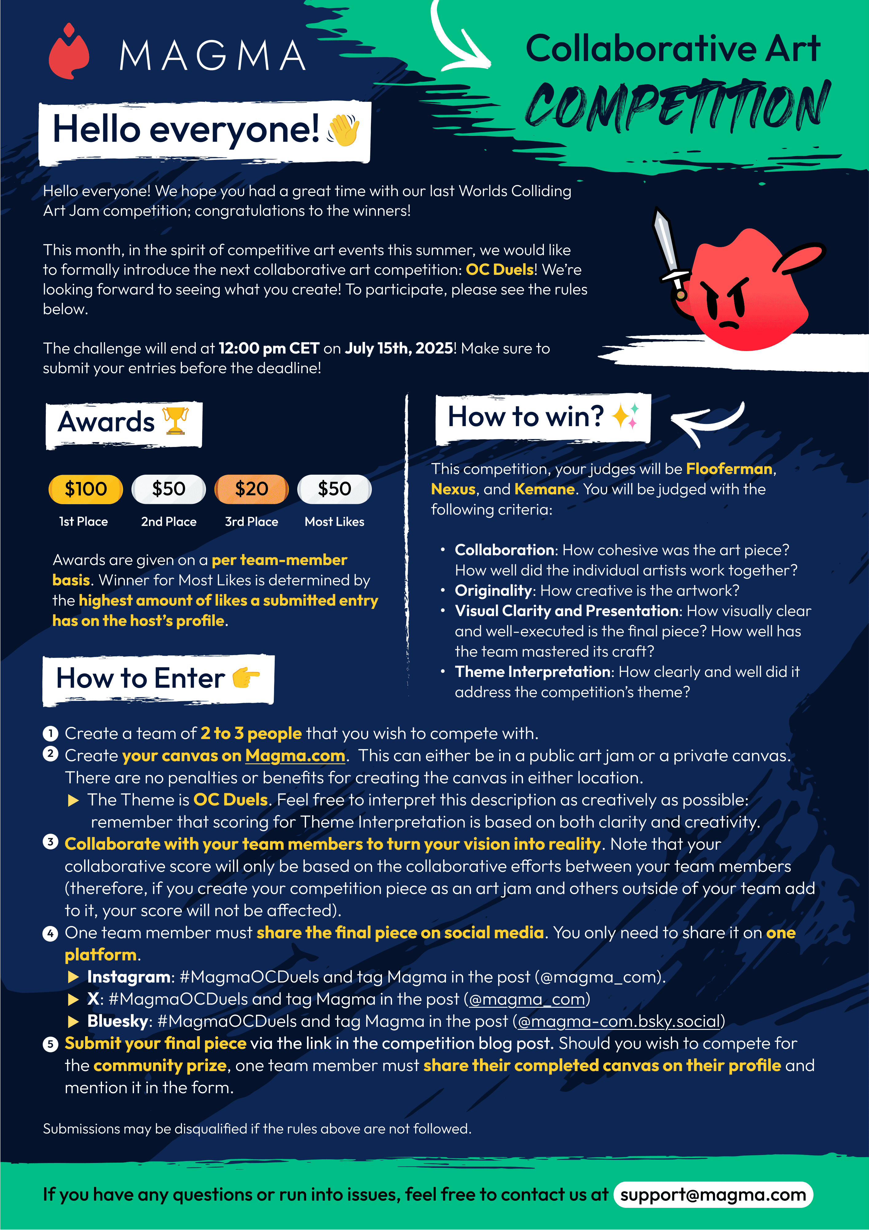 Bluesky: #MagmaOCDuels and tag Magma in the post (@magma-com.bsky.social)