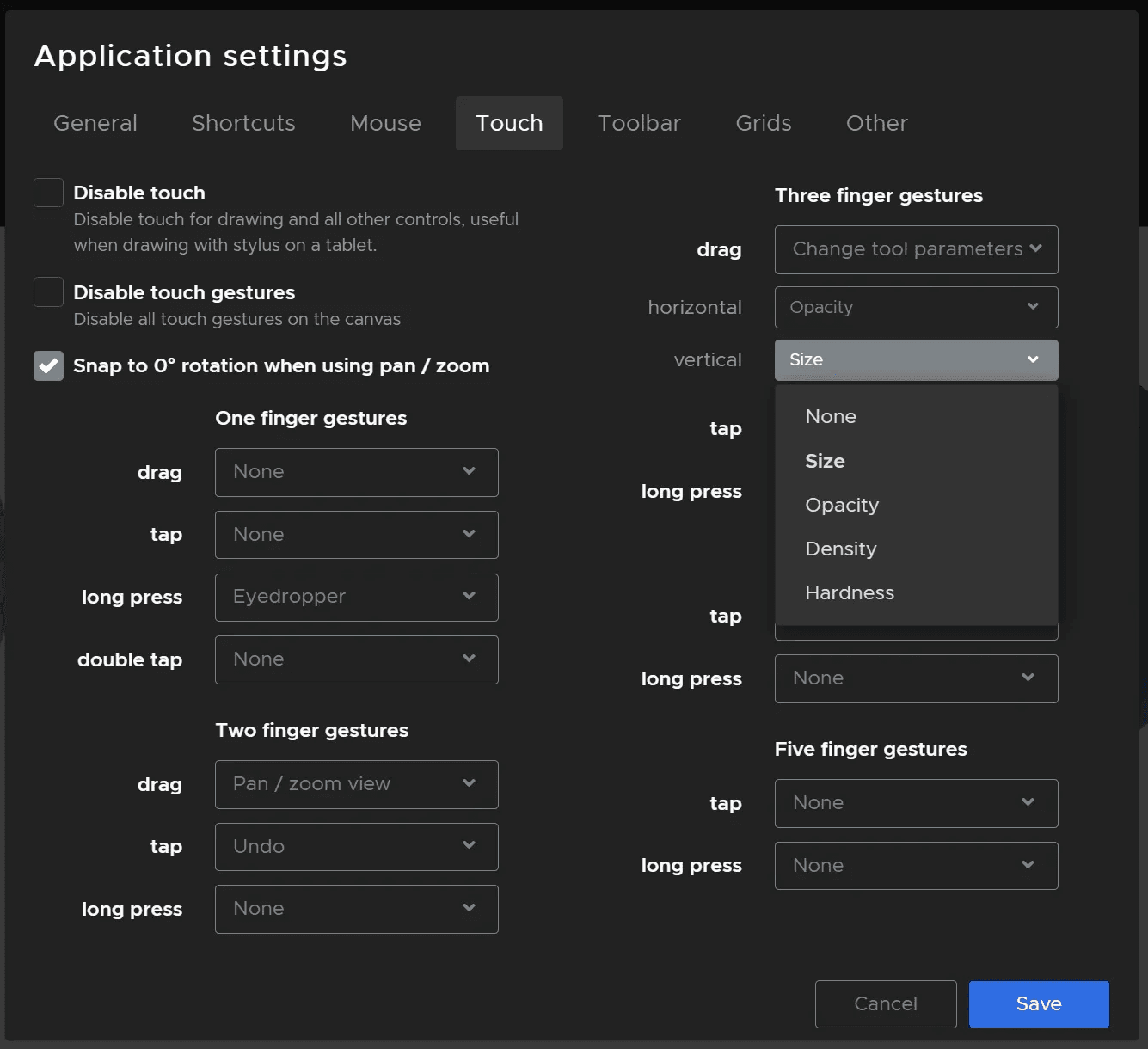 Touch Gestures and On-Screen Menues in Magma with the Wacom Movink