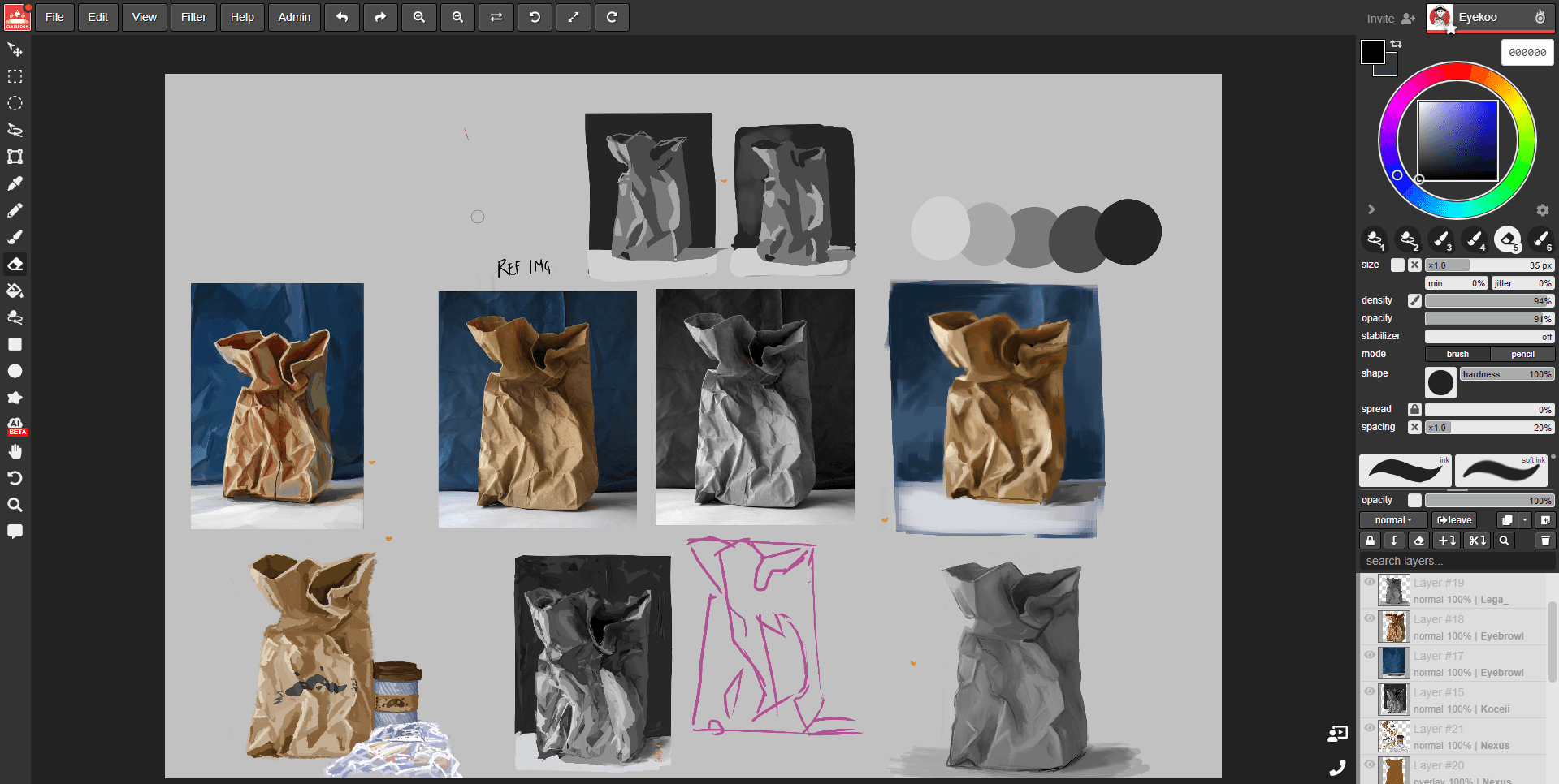 When it comes more complex objects, its important not to get caught up in the details and everything that makes it so. Our next lesson covered a crumpled paper bag with its many plane changes.