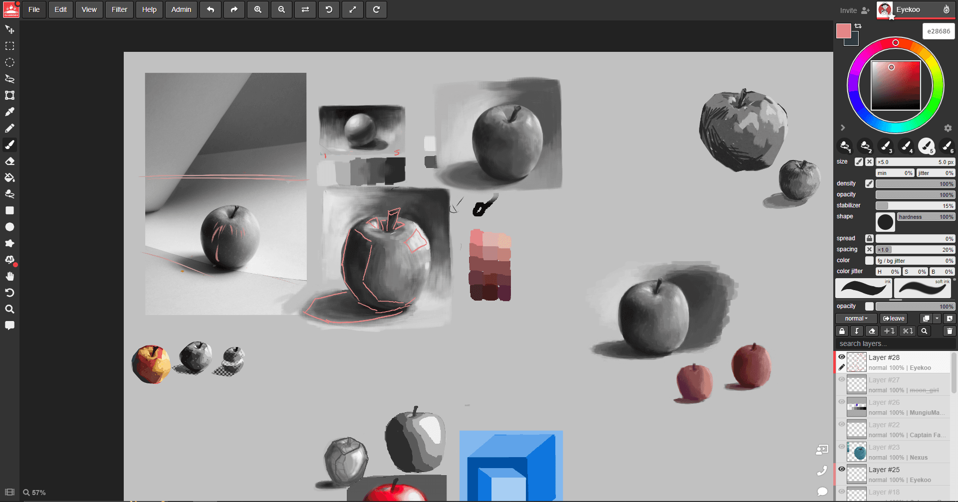 As a digital painting beginner, you’ll want to keep these really simple to start. Single objects, like the humble apple, with a straightforward lighting setup will do well so that you can focus on those fundamentals or experiments with different color schemes, lighting scenarios, or brush techniques.