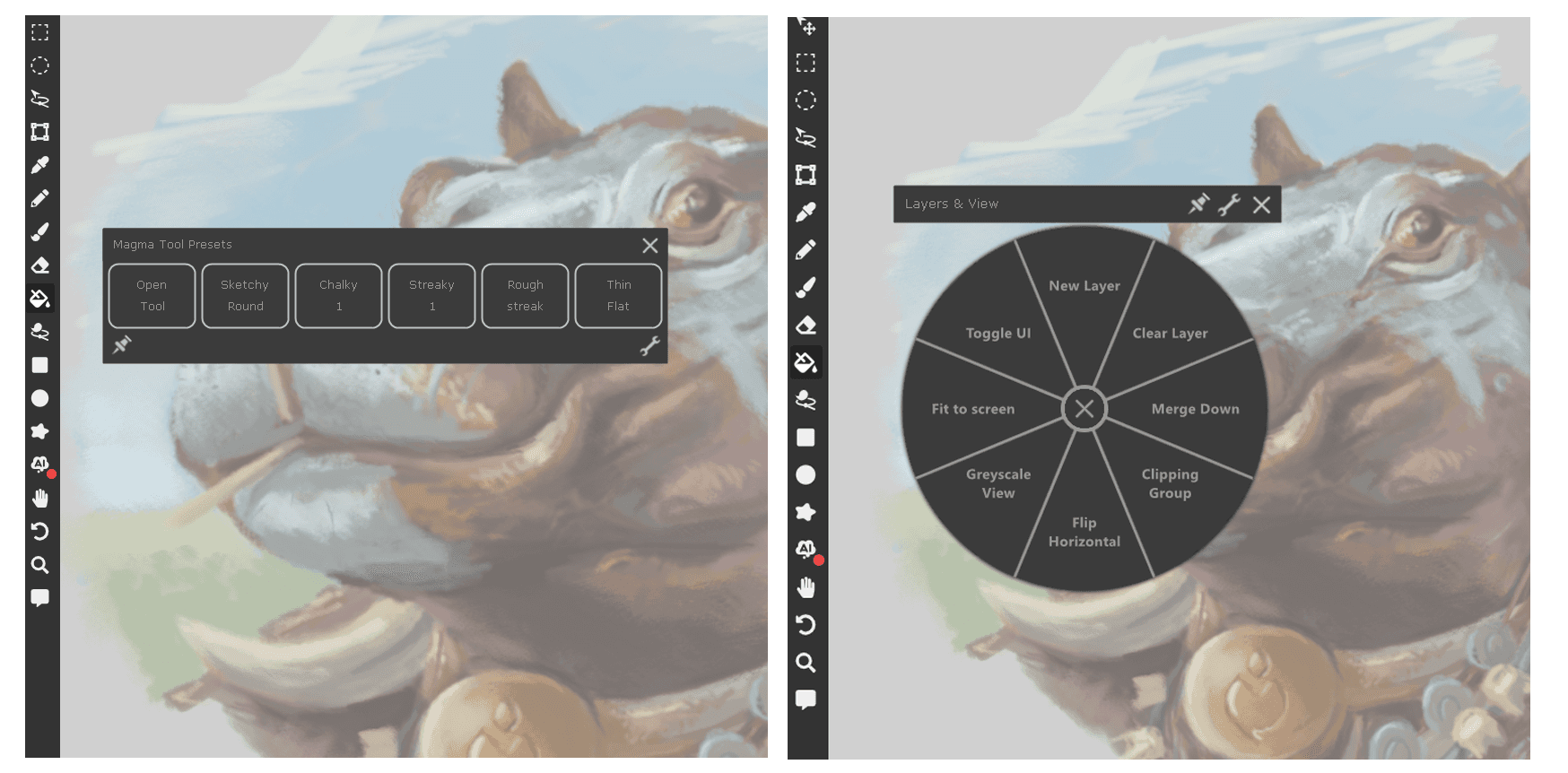 If you're using Magma on a small screen, you might loose some precious drawing area to different UI elements. Thankfully, there are some ways you can reduce this and make the drawing experience far more comfortable.