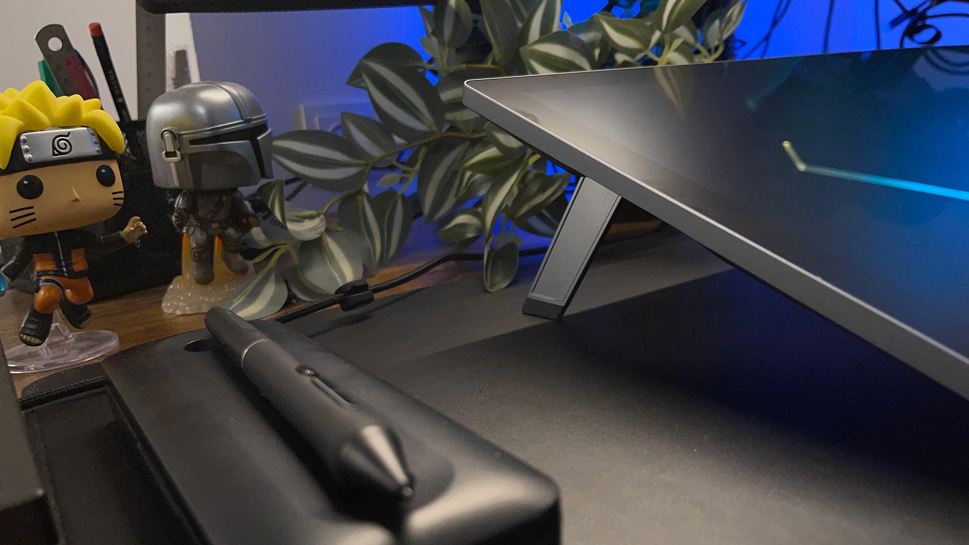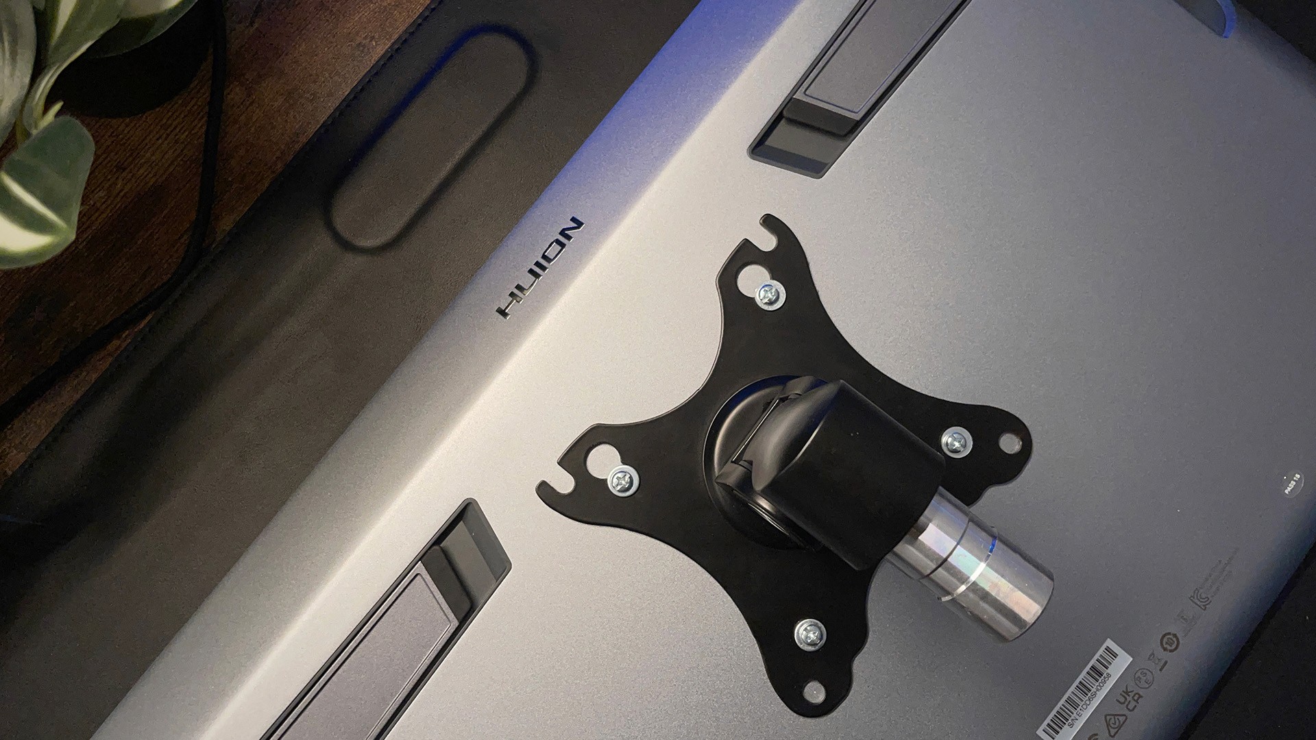 The Kamvas Pro 19 has fold-out legs on the underside as well as holes for VESA mounting. So, you can set this up on your desk in whatever way best suits you. The legs are very sturdy too, so you don't have to worry about movement when applying a bit of pressure or resting your arm on the tablet.