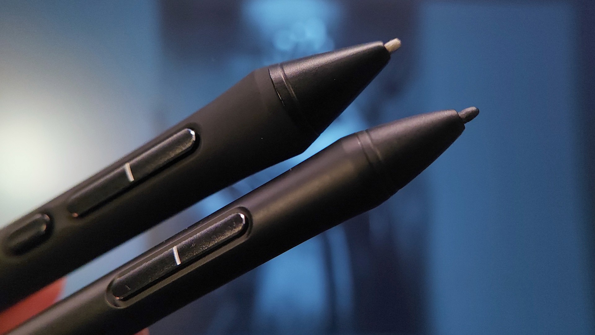 The new pens from Huion are impressively sensitive. The initial activation is really low and you’re getting 16k levels of pressure sensitivity. That pressure range might sound impressive, but in my opinion, the initial activation is a far more valuable spec when it comes to drawing tablets, as well as the accuracy of the lines. The included PW600 and PW600S pens handle this very well.One pen follows the typical tapered design that is broader toward the tip. The other is much slimmer and more even in shape from front to back. Each of the pens is individually recognized, so you could even set completely different pressure curves and buttons settings for the pens and pick them up as two completely separate tools.