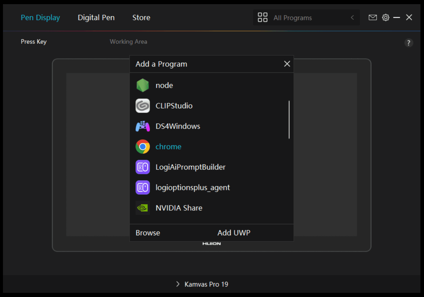 If you use multiple programs for drawing, painting, and other creative tasks, you can save custom Settings profiles for each. When creating a profile for Magma, you’ll select your browser as the chosen application. You’ll have to do this for the tablet and Keydial separately.