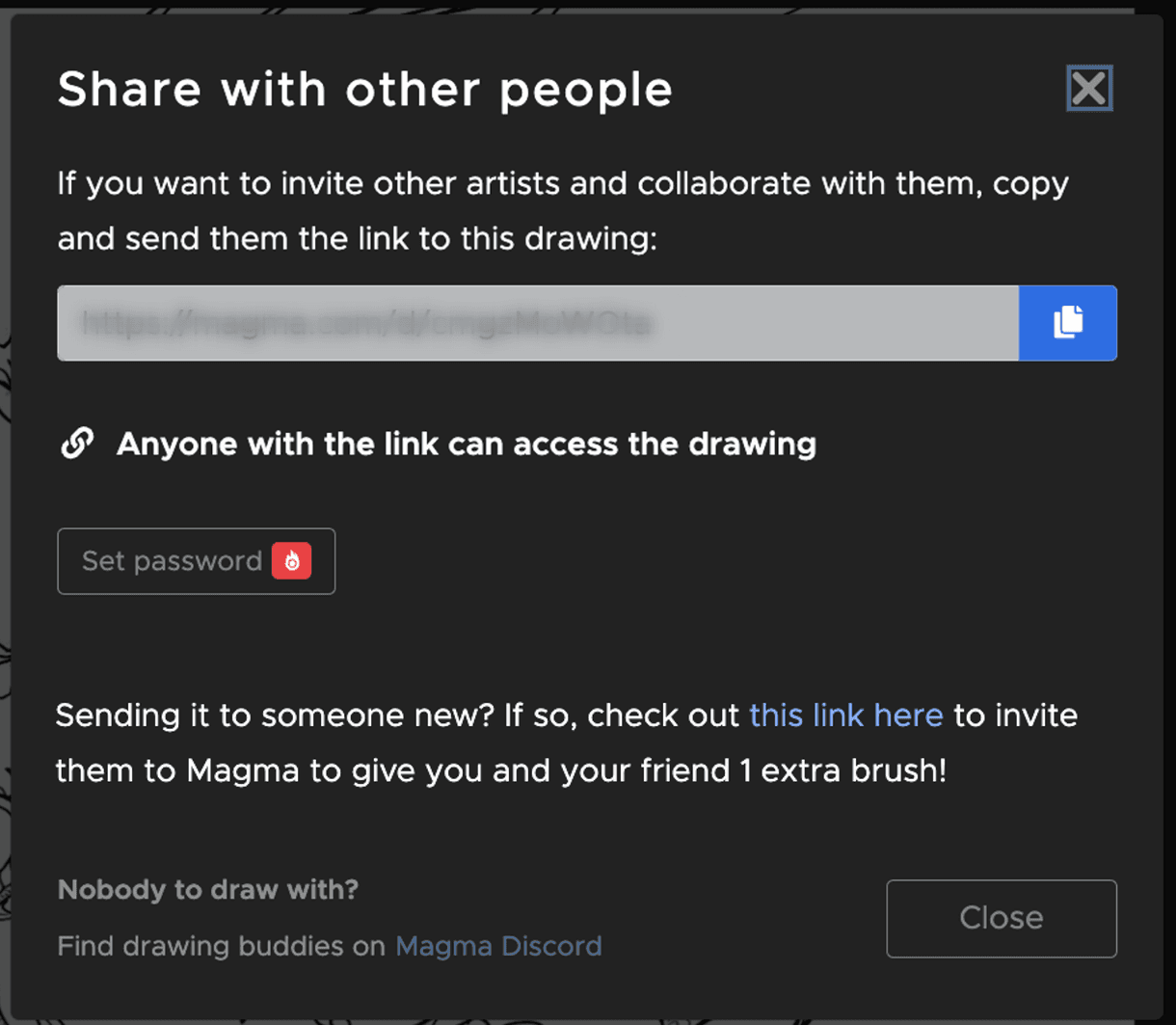 Magma was built to help artists draw with friends, and we encourage you to invite pals to our platform. That’s why we’ve added a special reward for referrals: Spark users can currently save 3 custom brushes, but you can now get extra brush presets by referring your friends to Magma! Read more about redeeming your reward below.