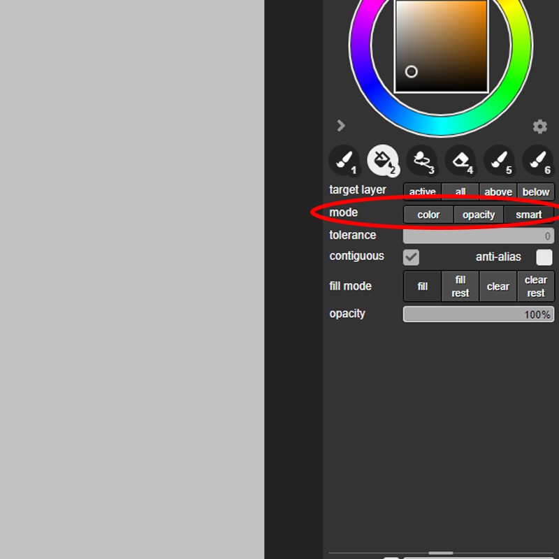Do you ever get those specks of white or background color when you use the bucket tool? One way around this in Magma is to use the Smart mode found in your bucket’s setting panel on the right.
