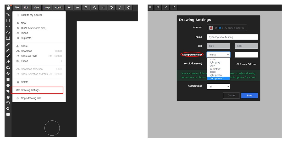 Normally when you try to export as a PNG from Magma it will include the background color of your canvas. Follow these steps to save your PNG image with a transparent background: