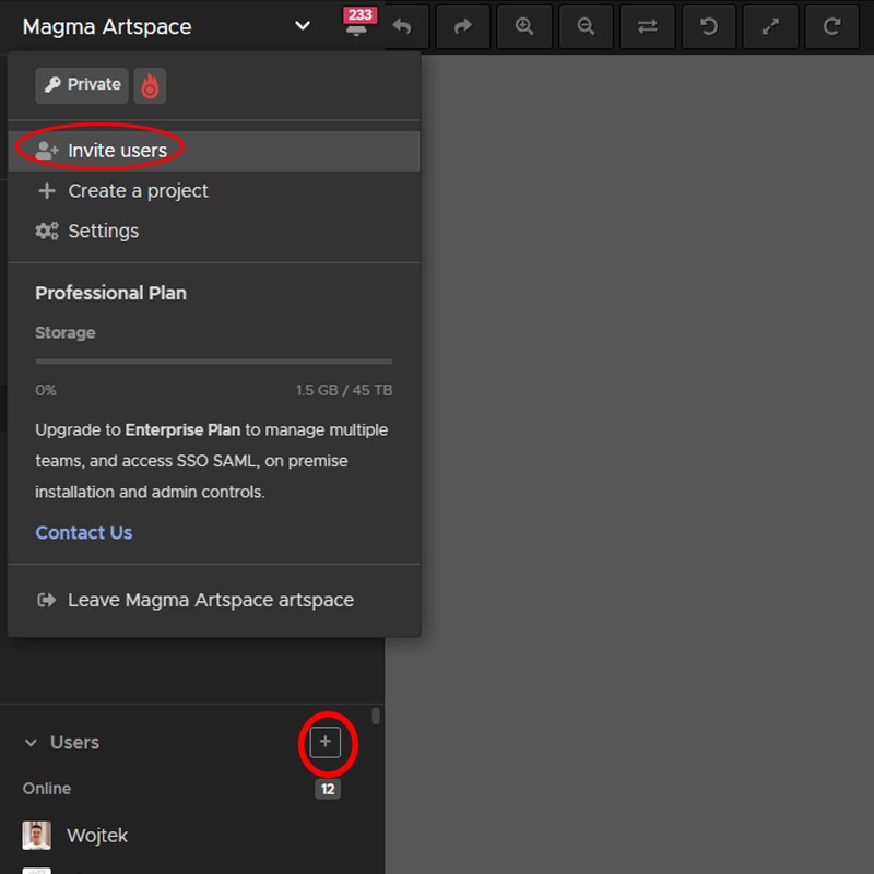 While your canvas is open, tap the Invite button on the top right next to your avatar.